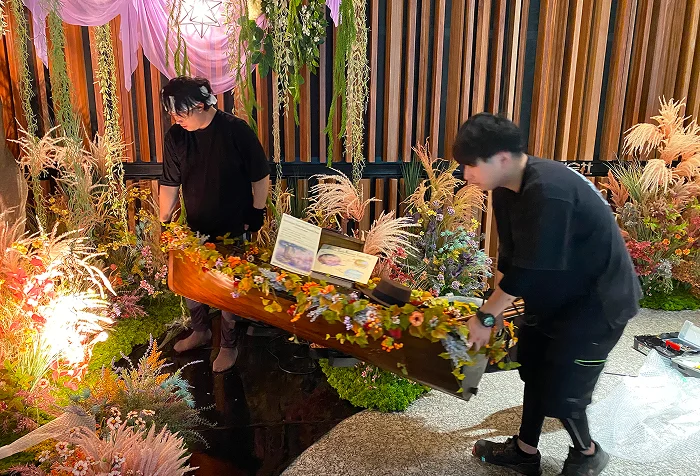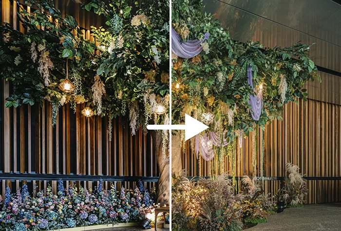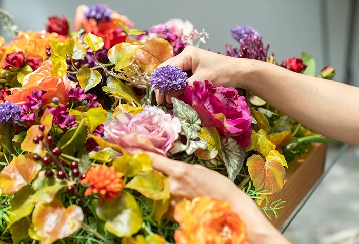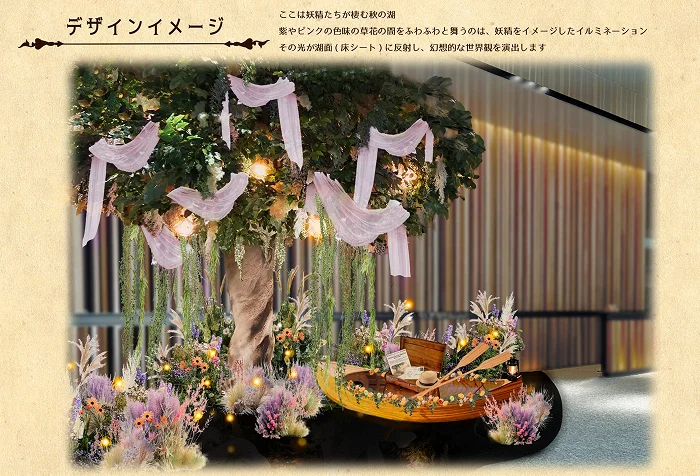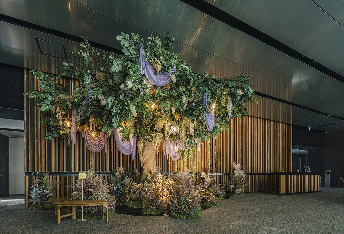 私たちが得意とするアーティフィシャルフラワー、立体造形による空間装飾の技術で、